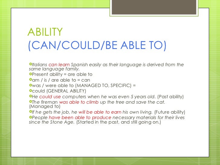 MODALS OF ABILITY - CAN, COULD, BE ABLE TO - YouTube from i.ytimg.com We can use could and be able to to talk about general ability in the past. The esl lesson explains which term is appropriate, depending on if you're talking about the past, present, or future. Can/could are modal auxiliary verbs. Esempi ed esercizi pratici in merito all'utilizzo in lingua inglese di can, could e be able to, nelle espressioni che fanno riferimento al potere. Esercizi di grammatica inglese sui verbi modali can could e be able to e relativo uso e differenze. Can and could are modal auxiliary verbs. Esercizio di grammatica inglese potere (can could be able to) e lezione di grammatica inglese gratis per imparare direttamente online. She's able to speak five languages.